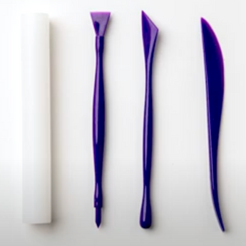 Each tool of the four has it's own propose, one is great for small holes, dots, texturing, patterns, and cutting, one is for shaping and smoothing with two ends for surface finishing and color blending, one for indentations, round textures, concave surfaces, line texture and clay cutting, and one is for smoothing clay to an even thickness.