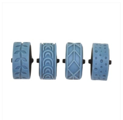 One handle with four different pattern wheels. Wheels roll freely to create continuous patterns. Designs include Rope, Vine, Feather Stitch and Pearl