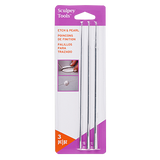 This Set of 3 metal skewers can be used for a variety of unique applications. The pointed ends are perfect for adding fine details or piercing beads. Because they are metal and have a consistent diameter through the center, beads can be baked right on the tool. The opposite end has a unique concave design that creates a raised pearl pattern. Product Dimensions: 1/8", 3/16", 1/4" *Click pictures to enlarge.